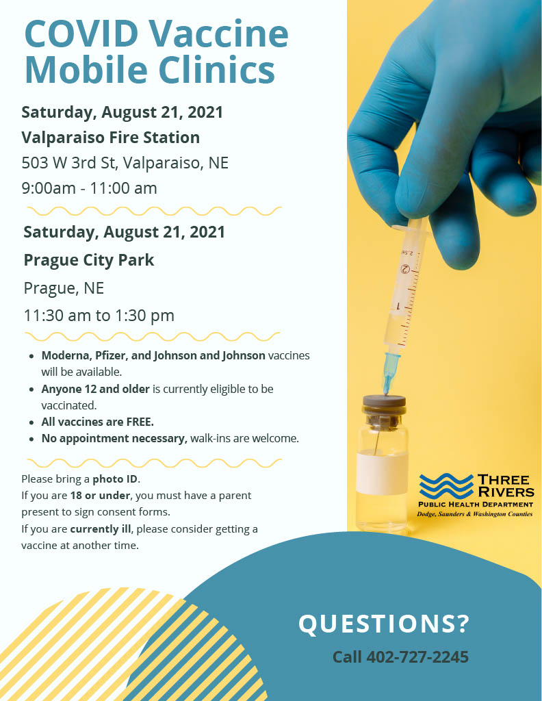 Monday April 19 from 4-7 pm. Two Rivers Public Health Department reports some Nebraskans have been sickened by mosquito-borne illnesses but not in the state. Two Rivers Public Health Department says recovery is still underway following floods that put communities in Dawson Buffalo and Hall Counties under water a year ago.