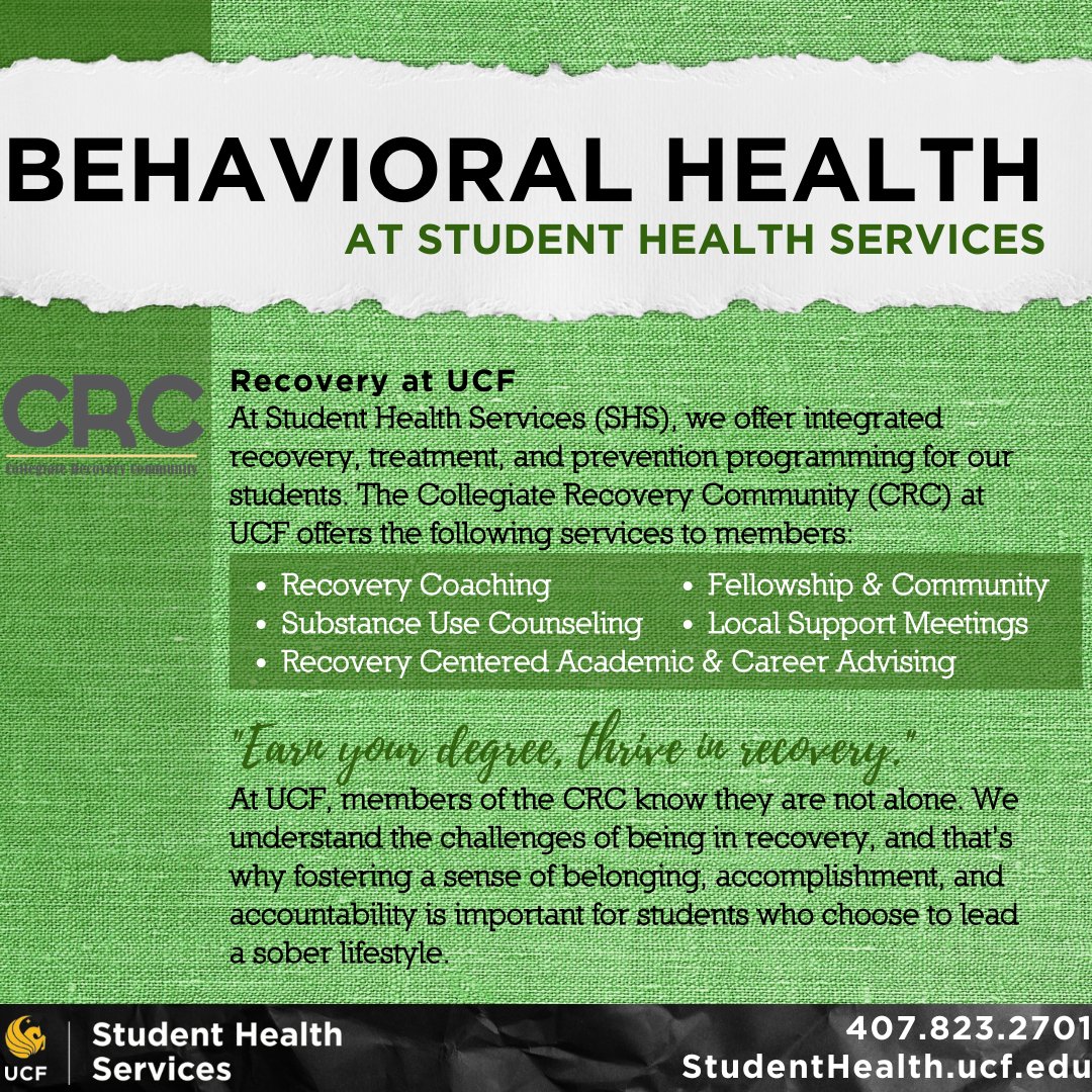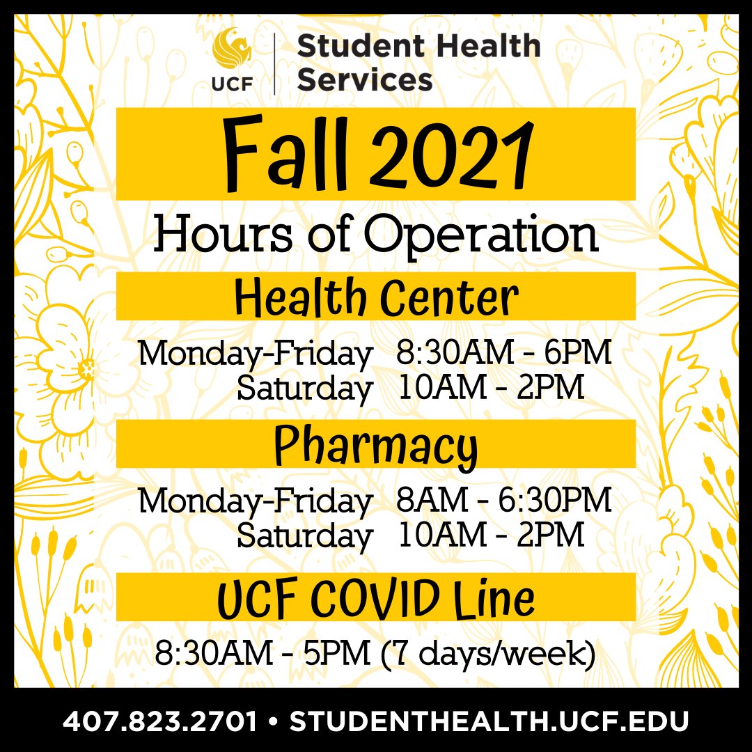 Office at RWC Building Suite 111. We know these may be difficult times for our communities but we want to assure you that SHS is still here for our UCF students. Free rapid testing for students is available from 9 am.